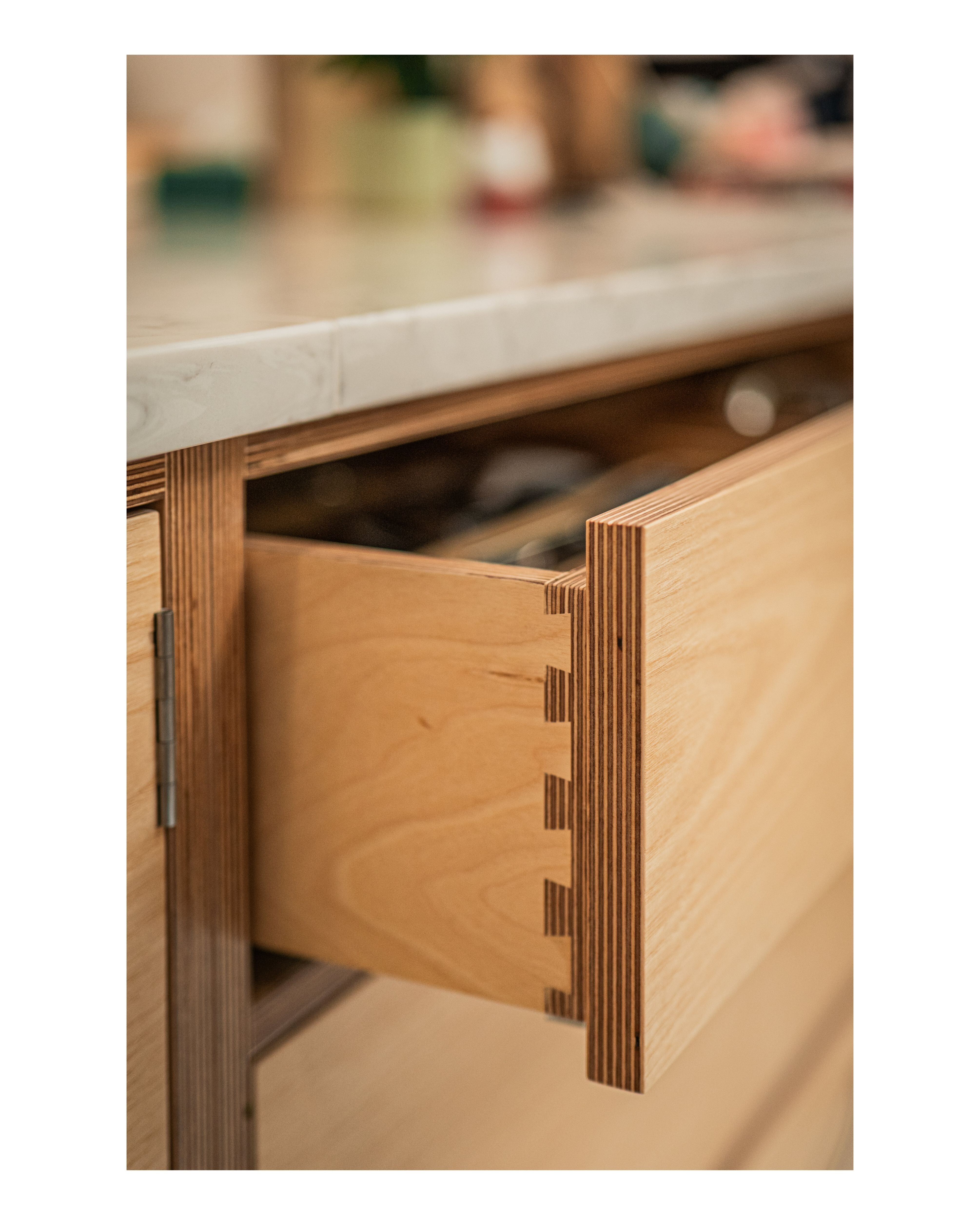 We chose unedged first quality Baltic Birch ply as the main component with the outer surfaces veneered in crown cut Ash veneer.