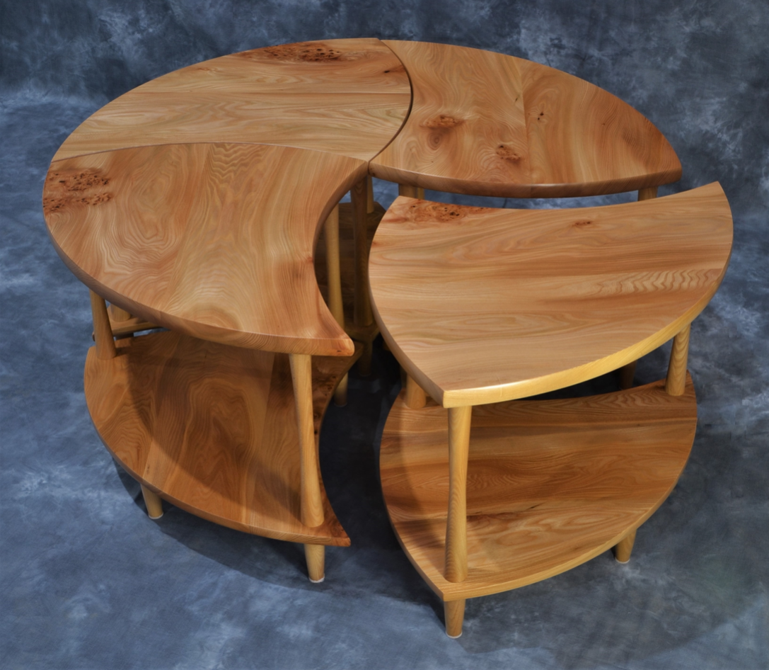 One thing led to another and before we knew it we ended up with a circular design with four curved segments. Each could be used as a stand alone table – just the perfect size, shape and height for a cup of coffee and a magazine but put all four together in the centre of the room and they would form a circular centrepiece.