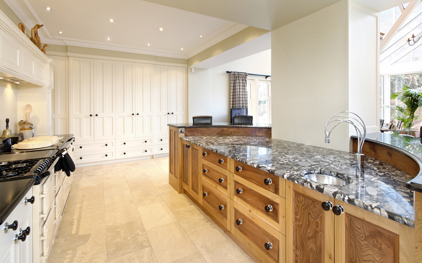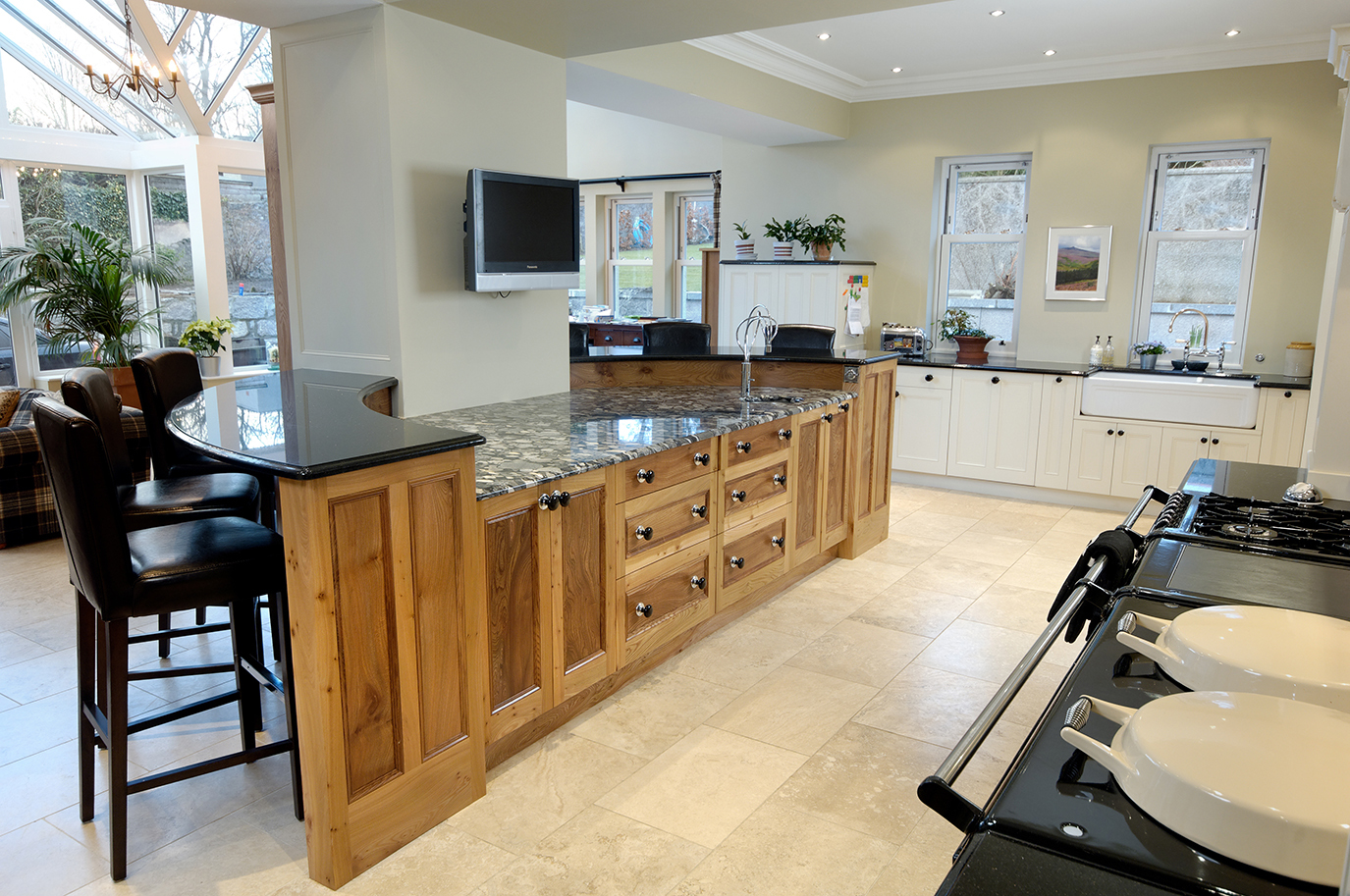 A large and impressive kitchen to complement a new extension to a substantial granite home in Aberdeen's West End.