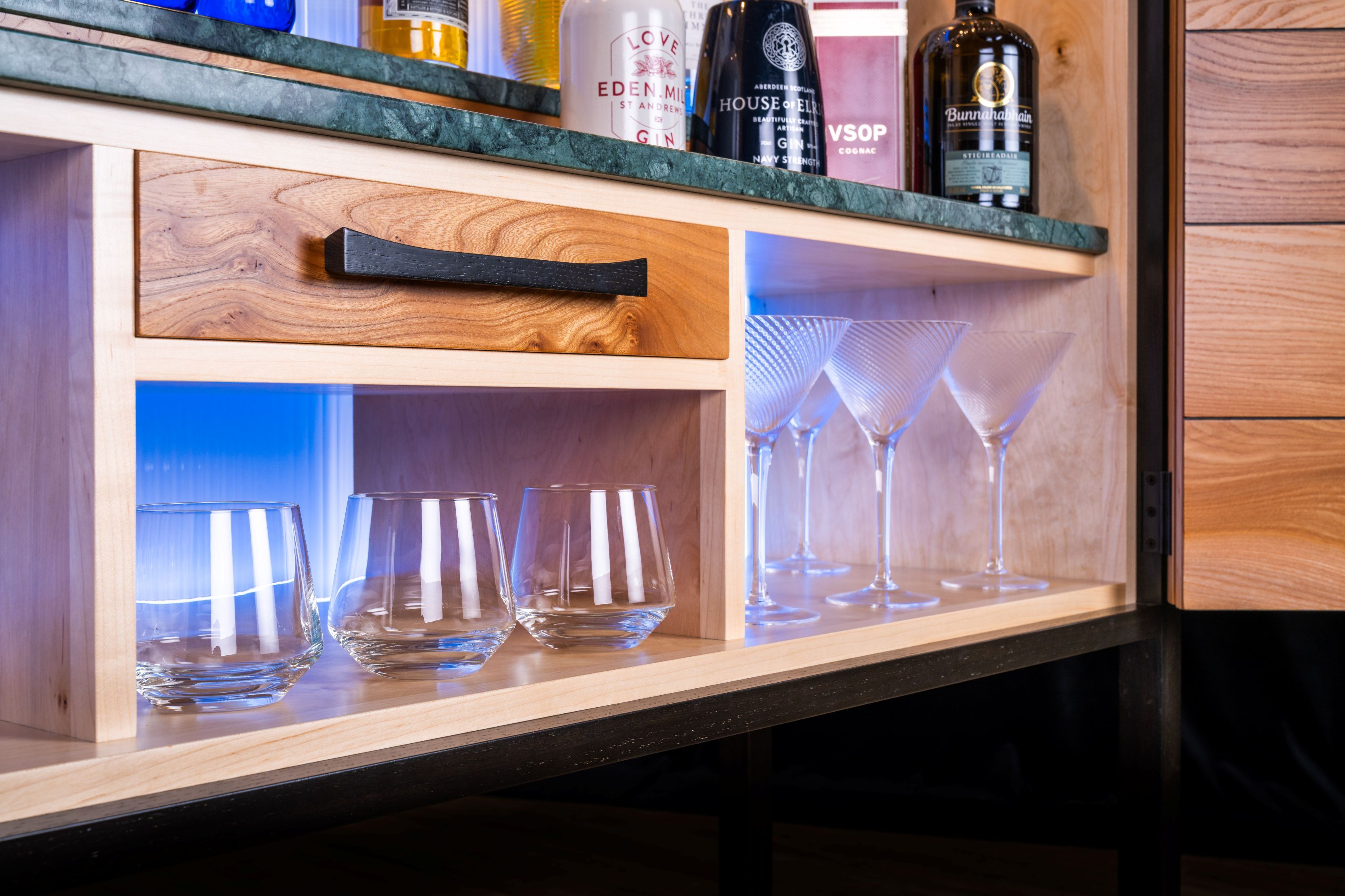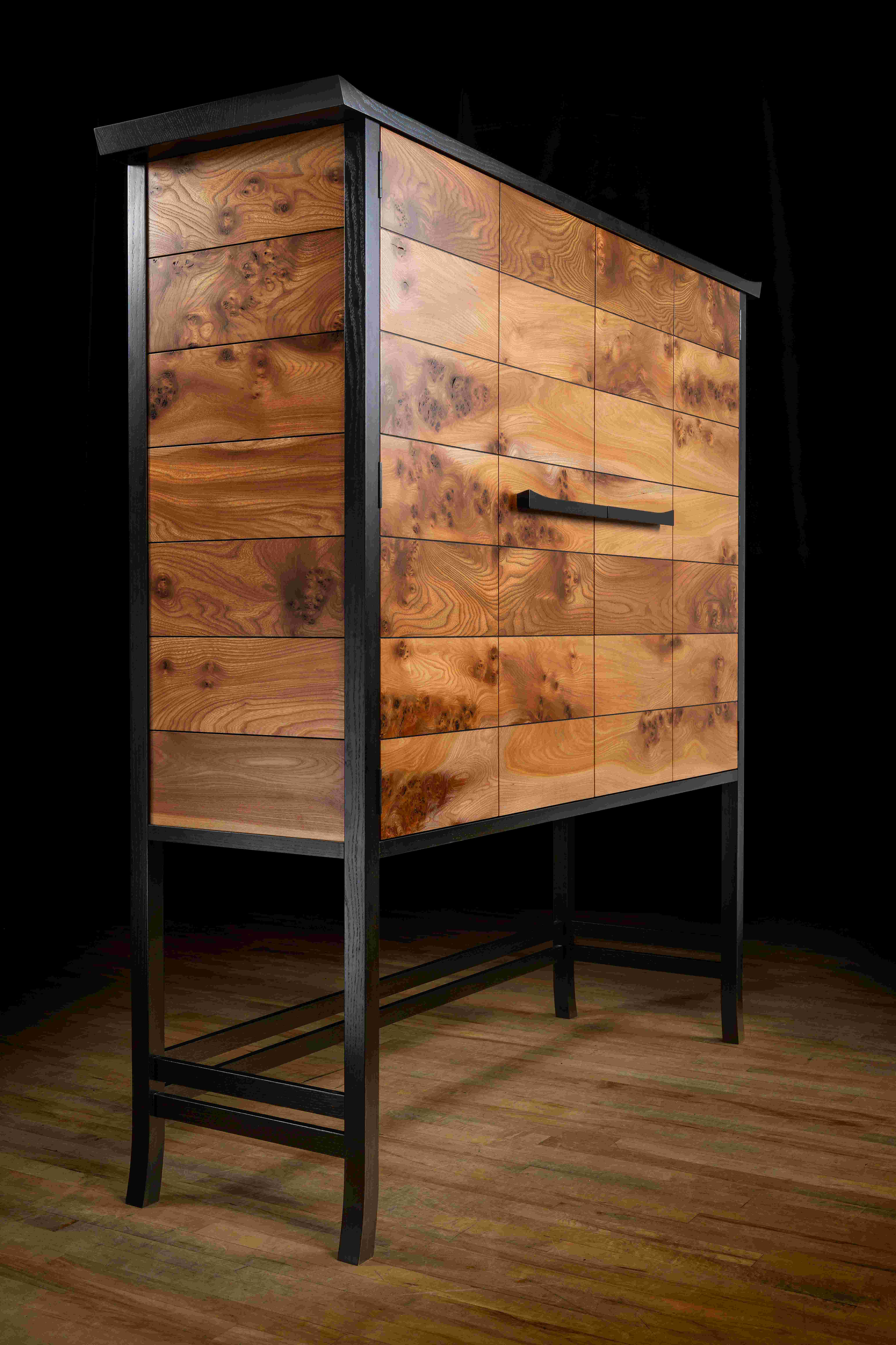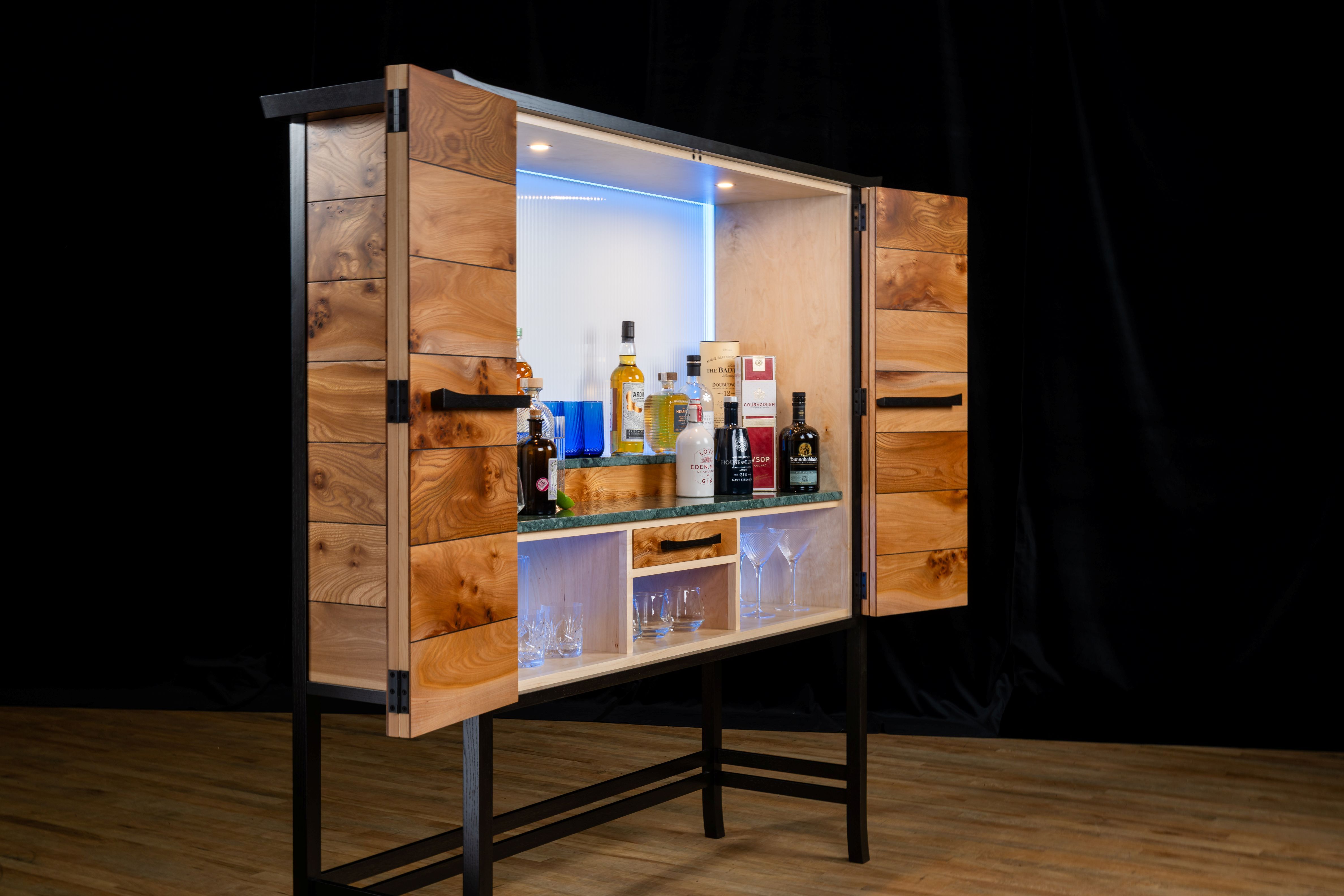 The Strata Drinks Cabinet Made with Ebonised Oak and Aberdeenshire Elm